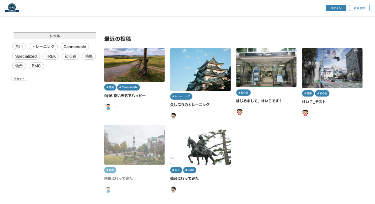 - 5人の学生チームでサイクリスト用情報交換サイトを作成しました。