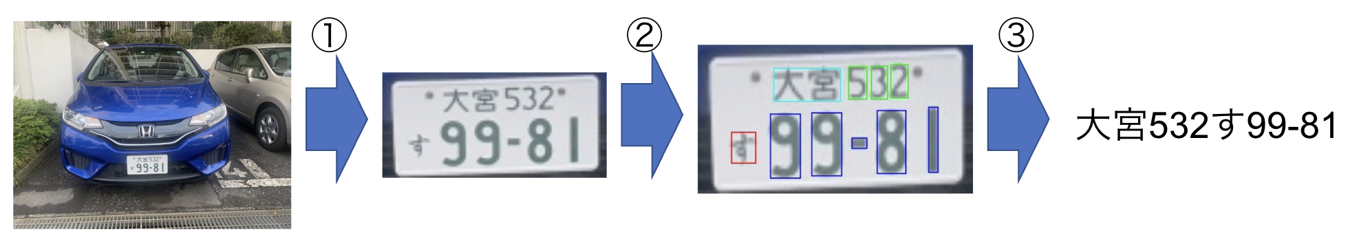 - Edge AIコンピュータのJetson Nano上で動作する日本語ナンバープレート認識システムを開発しました。