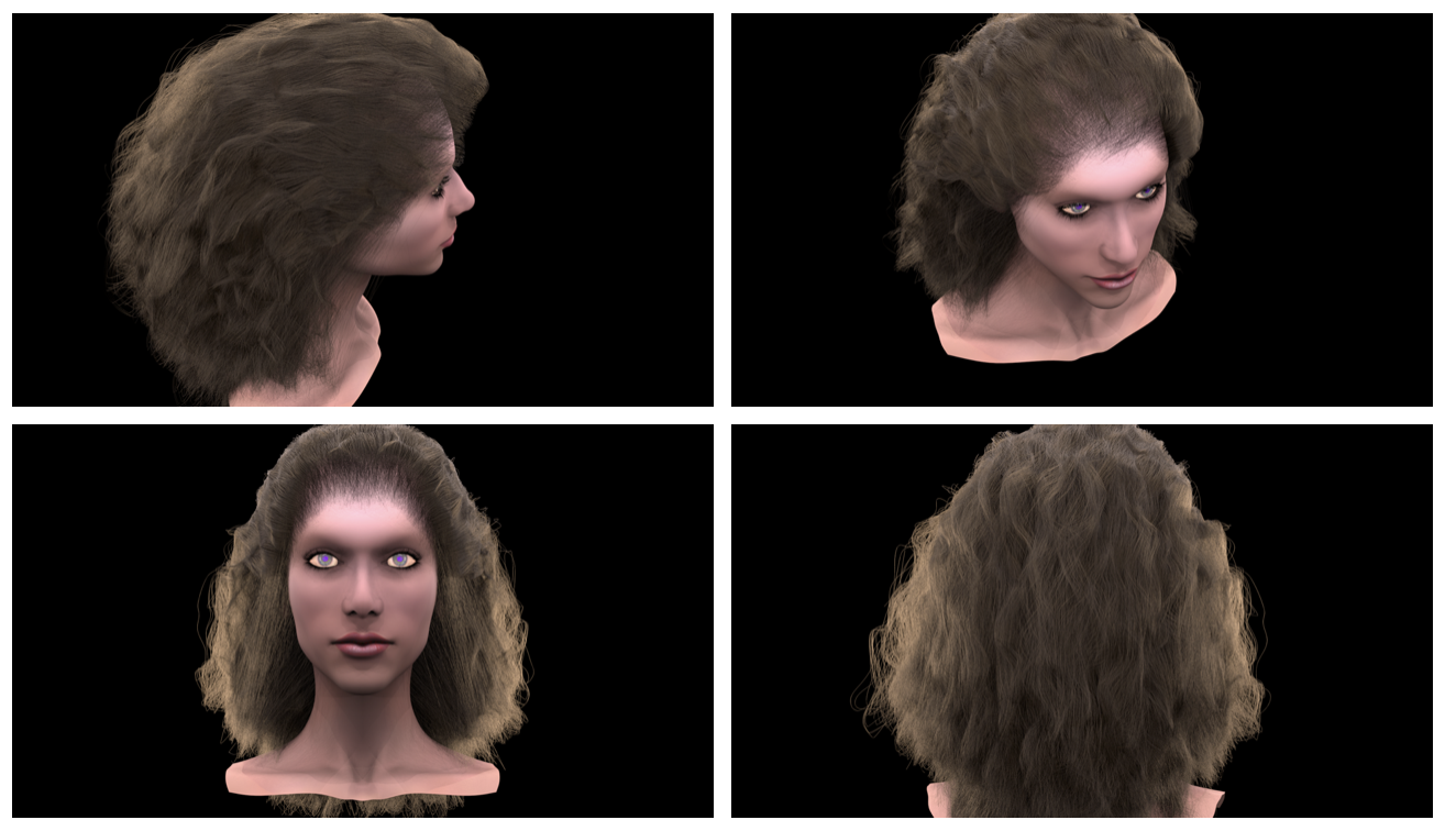 - 写真はYuksel hair dataset(curly)をレンダリングした例です。